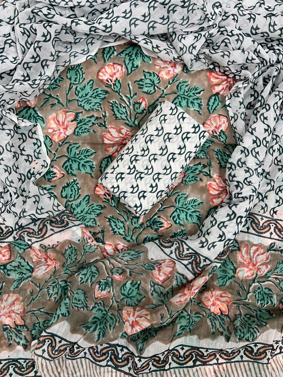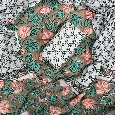 Styling possibilities abound. Pair it with your favorite juttis for a casual outing or dress it up with statement jewelry for a festive gathering. Let this enchanting suit set be your go-to for expressing your unique style, while celebrating the rich heritage of hand block printing.